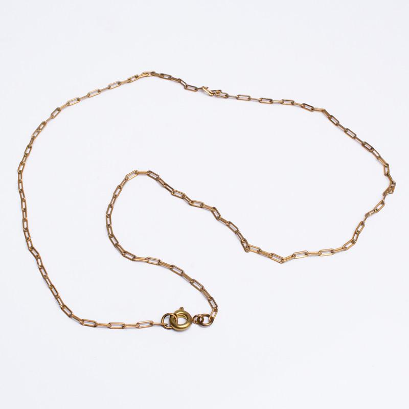 Gargantilha em bruto, produzida com Corrente Longa Diamantada 0,50mm, fecho Redondo de latão e argolinhas.